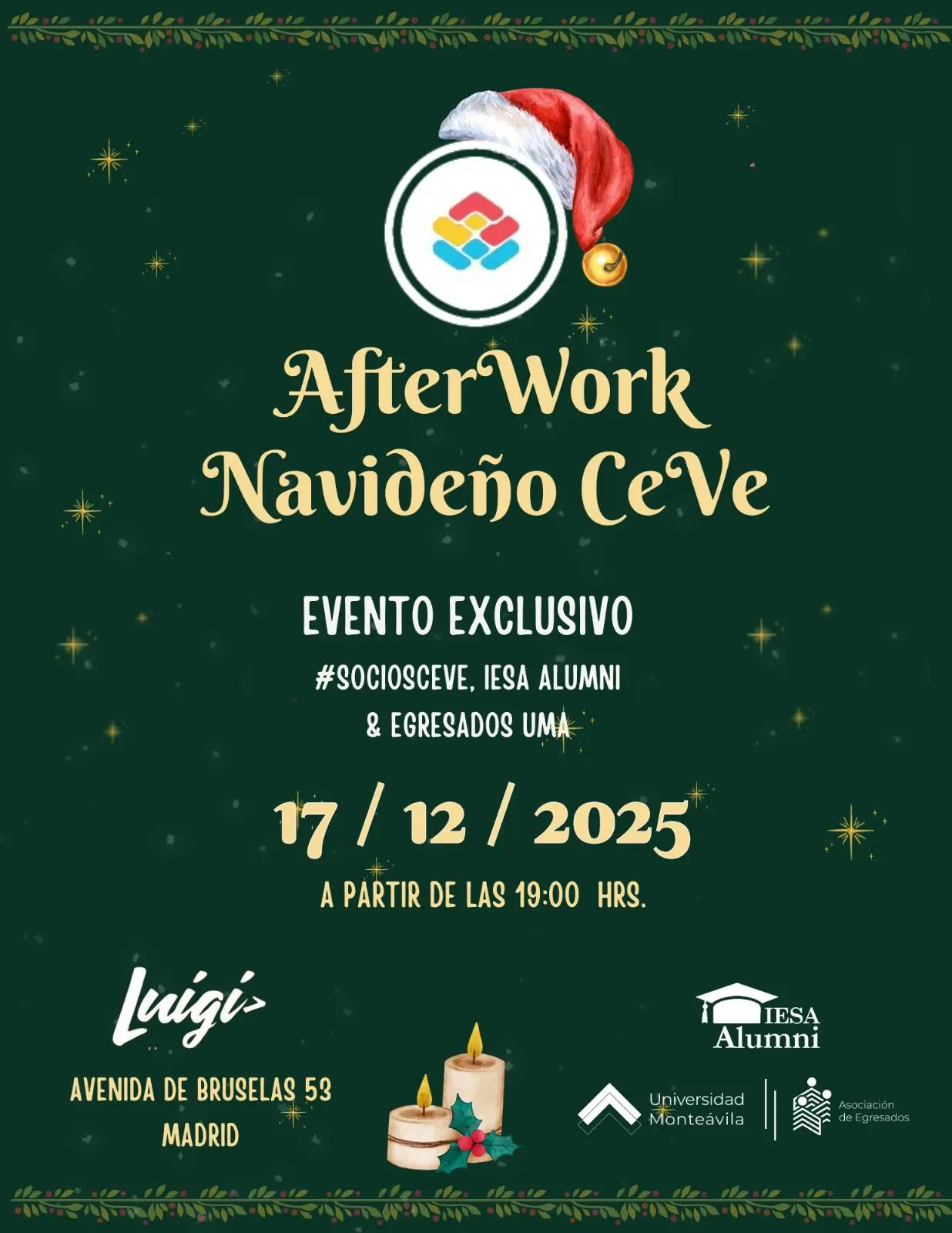 Este 17 de diciembre queremos invitarte a una velada para celebrar juntos, conectar con propósito y abrir la puerta a nuevas oportunidades empresariales entre #SociosCeVe, IESA alumni & egresados UMA 🫂