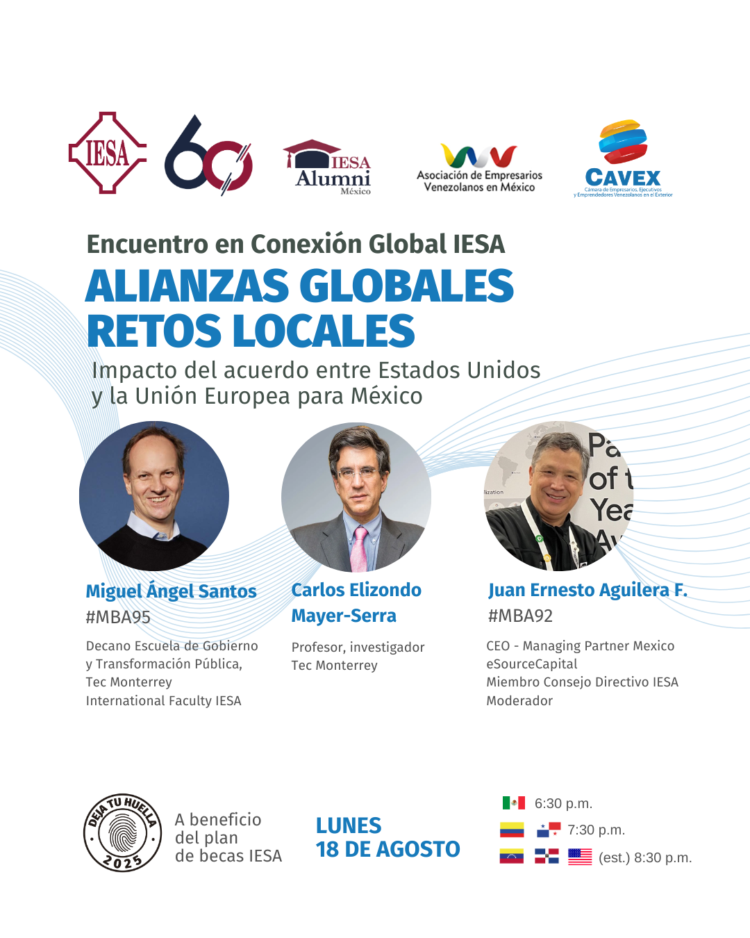 Te invitamos a un Encuentro en Conexión Global IESA, exclusivo por Zoom a beneficio del Plan de Becas del IESA, donde analizaremos el alcance real de este acuerdo para empresarios, emprendedores y ejecutivos en México.