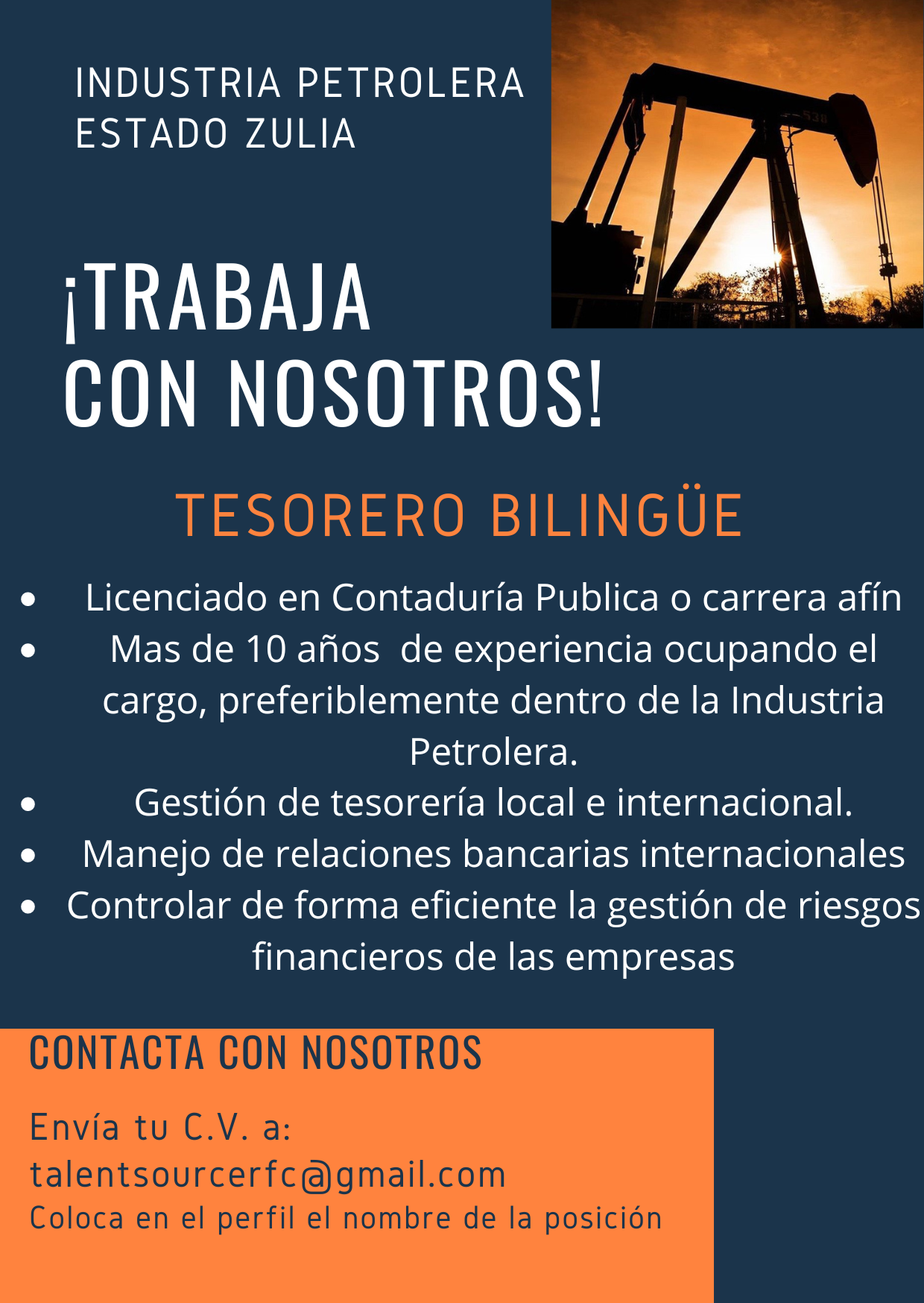 Para aplicar a la vacenta envía tu cv al correo: talentsourcerfc@gmail.com