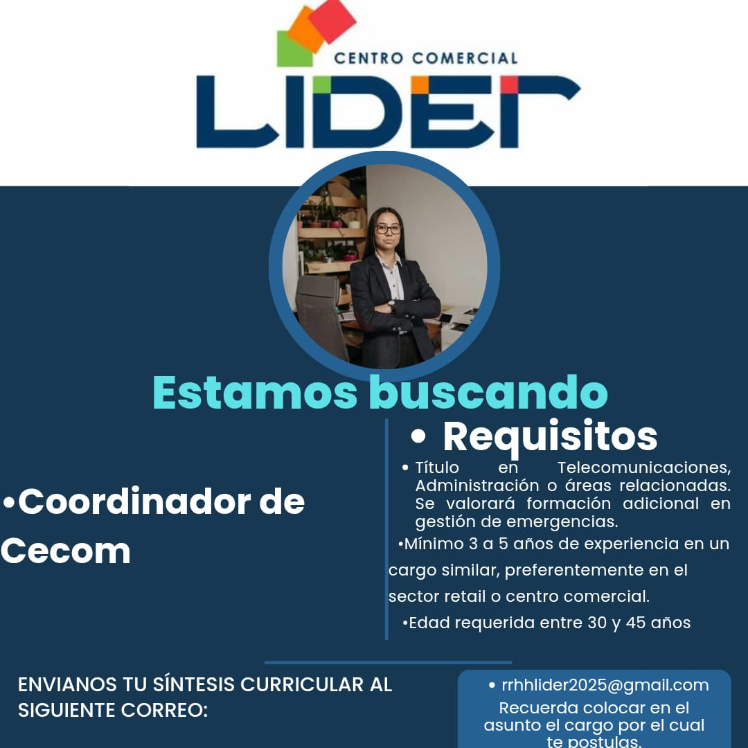 Si están interesados, envíen su CV a: rrhhlider2025@gmail.com.