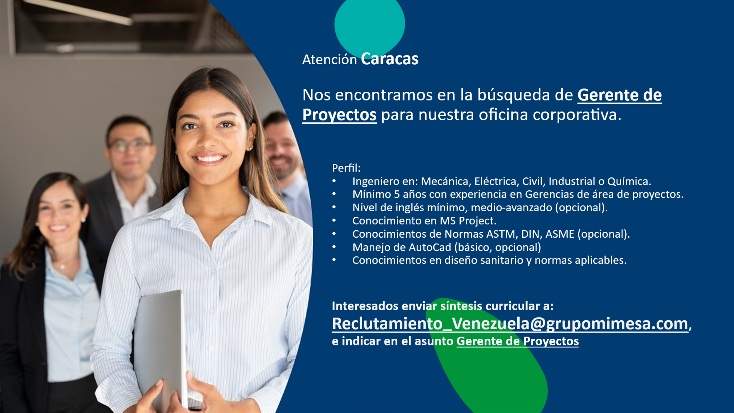 Enviar los CVs con el asunto Gerente de proyectos – BOLSA DE TRABAJO IESA, al siguiente correo: reclutamiento_venezuela@grupomimesa.com