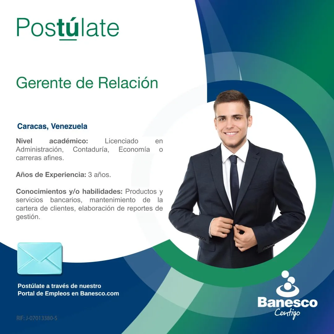 Para postularse debe ingresar al siguiente link: https://empleos.banesco.com/Authentication/Login