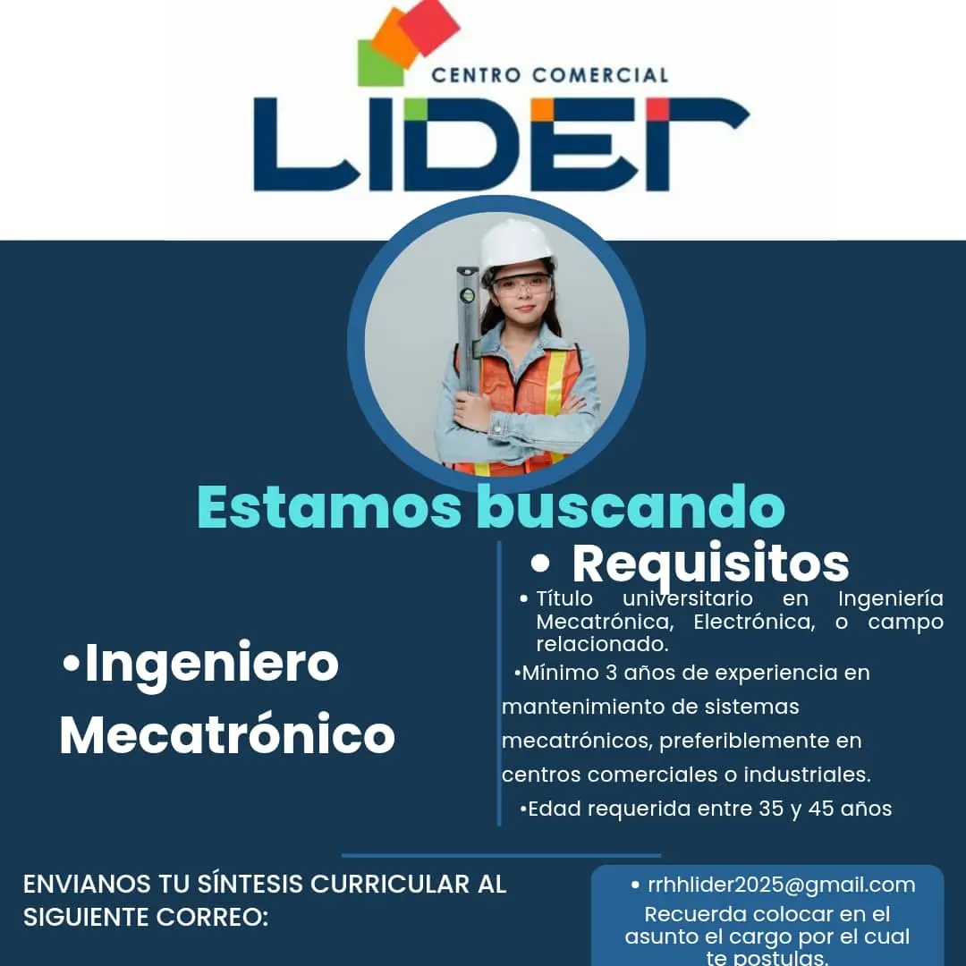 Si están interesados, envíen su CV a: rrhhlider2025@gmail.com.